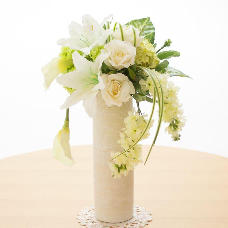 フラワーアレンジメント ホワイトカラーでまとめたクラシックアレンジ 雑貨 横浜ディスプレイミュージアム 問屋 仕入れ 卸 卸売の専門 仕入れならnetsea